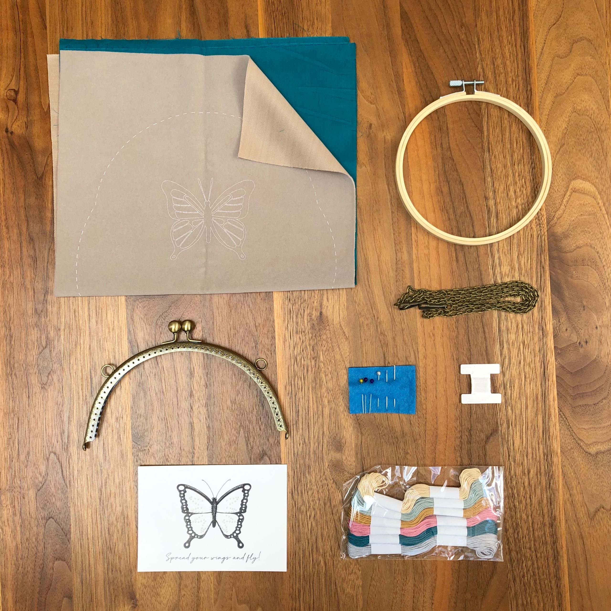 The MakeBox for August was a kit to make a velvet butterfly purse. I was really looking forward to this box arriving because it seemed a bit different to other projects that I’ve had before and others I’ve seen online which I’m not signed up to (it’s only a matter of time, I think I’m addicted to subscription boxes!). I’ve never made a bag like this before with a clasp but the first part of the project was embroidery which I’m fairly at home with so I was pretty confident about it.