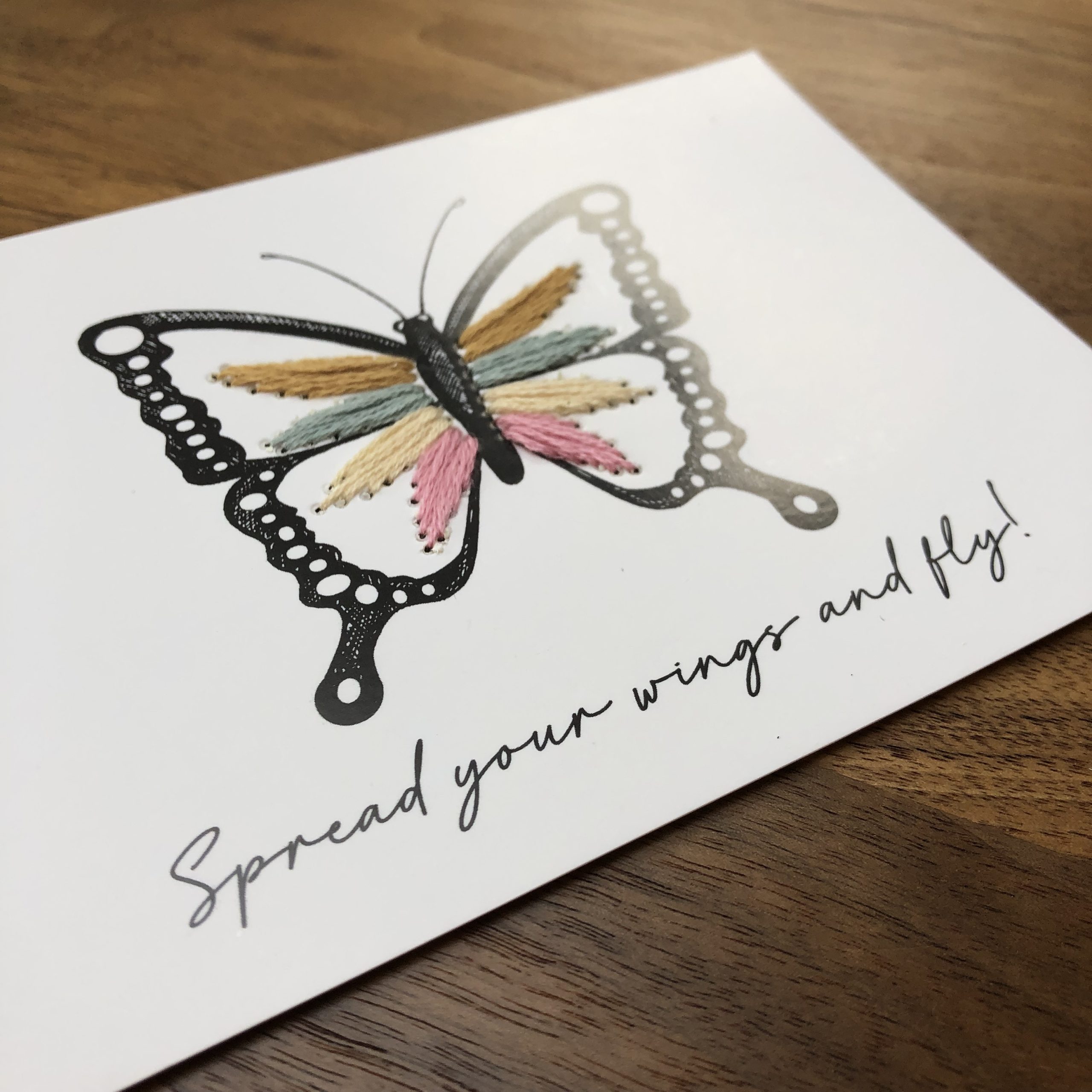 Also included in the box was a sweet little postcard which had pre-made holes so you could embellish it with some embroidery too. Another motivational piece for my inspiration wall!