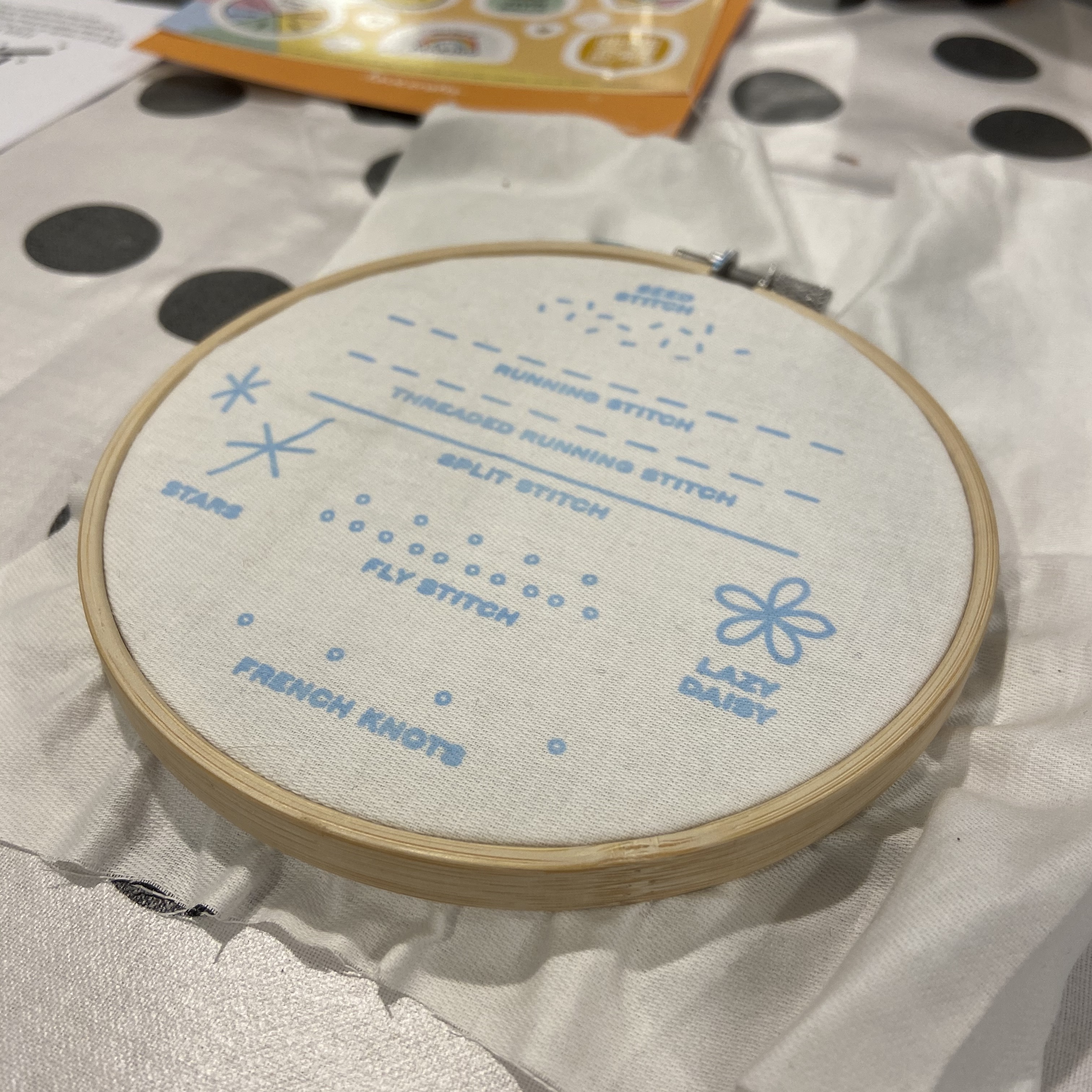 Once we had done that it was time for some embroidery. There were some pre-printed hoops with various stitches on for beginners or just for practice and a handy how-to guide. I’m pretty confident with my embroidery so I didn’t use mine, but I thought it was a great tool for beginners. One of the best things about the workshop was that there was no pressure to do a certain thing or to keep up with the rest of the group. You could just work at your own pace, having fun creating something pretty, and Christine was on hand to help when you needed her.