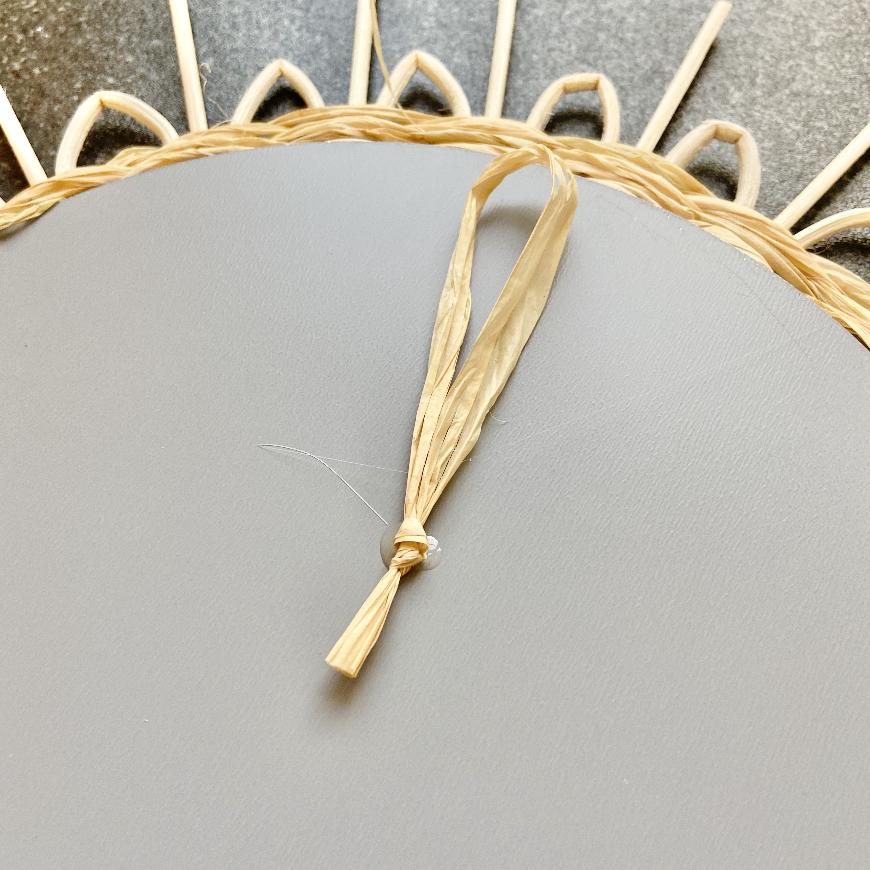 The final step was to weave around the outside with the natural raffia. I really enjoyed this part. It was easy to do and gave such a nice finish to the mirror. If I’d had more materials I think I would have liked to do design one as well with just straight sticks as I could have done more weaving. Lastly I added a little raffia hook to the back.