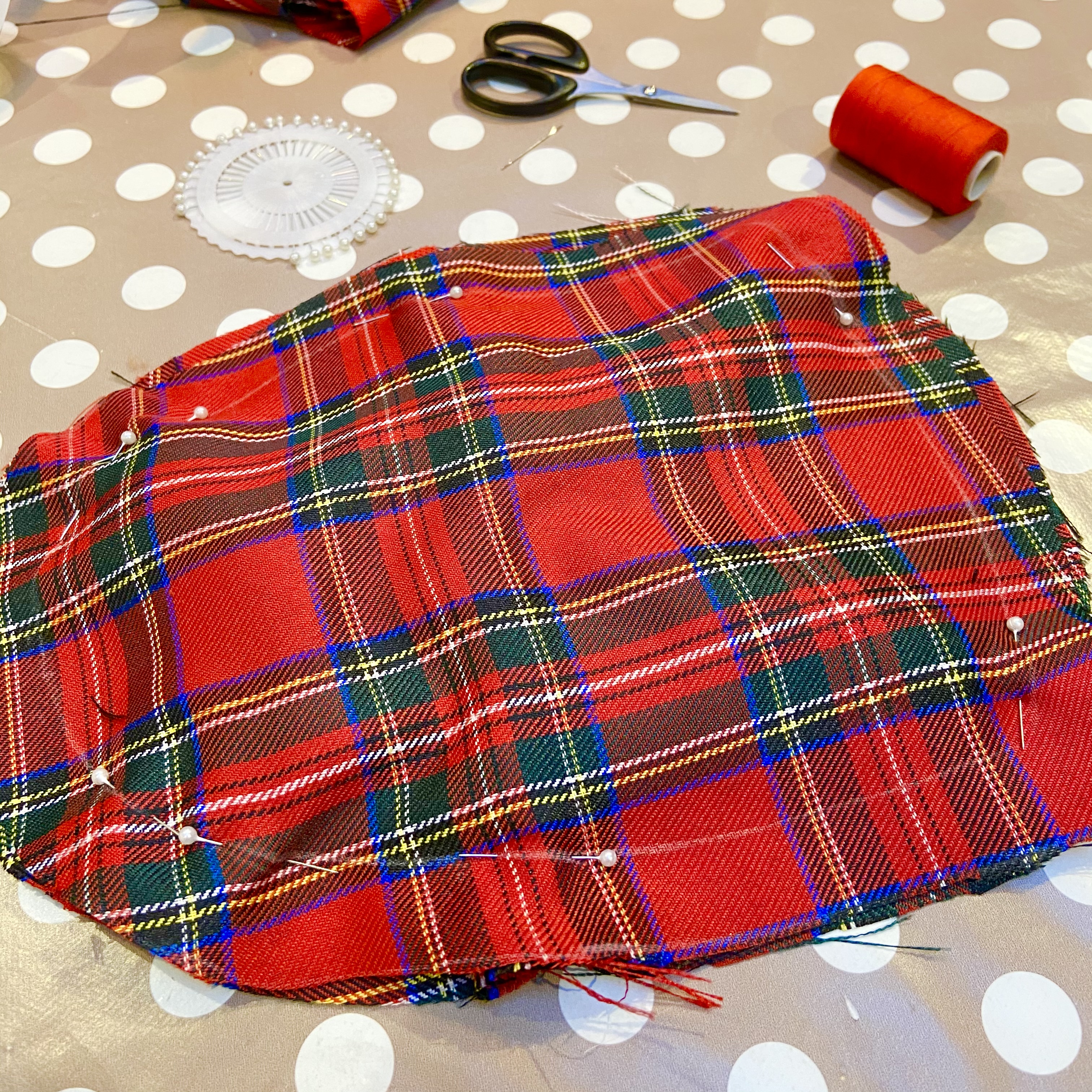 I started off by cutting out all the fabric pieces using the paper templates. The instructions said to leave a one inch seam allowance around each piece, which I thought was quite big, considering some of the pieces were quite small. I made the ears first and after I had sewed the tartan and felt pieces together I trimmed around the edge before turning them right side out, otherwise they would have been too bulky. I then moved onto the arms and once again trimmed the seam allowance down, however this time when I turned it out the seam split apart and I ended up with a hole in the arm as the fabric had just frayed away down to the stitches. I found the whole time I was sewing that the tartan fabric was fraying and it was quite difficult and slippery to work with. I had enough spare material to cut new arm pieces and from then on I didn’t trim down the seam allowance, even though this made it quite tricky when turning the pieces out.